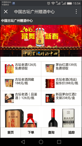 茅台镇古坛老酒广州中心微信定制上线,为古坛老酒广州中心的客户提供移动端在线查询,下单,销售分析,定单跟踪。方便了各级分销商的管理,以及个人用户的移动快捷下单。